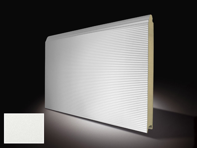Panel SECUR-PAN 495/42, 9016 SATIN, Multi-Rib. Perfil terraja y hembra con protección para los dedos. Composto de doble chapa en acero prelacada, lado interior gofrado stucco y exterior liso. Rellenamiento con espuma de poliuretano, sin CFC. Con platinas de acero, longitudinales, internas de refuerzo. Espesor total del panel 42 mm.